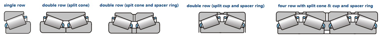 Tapered roller bearings are manufactured in structures of single row, double row and four rows.